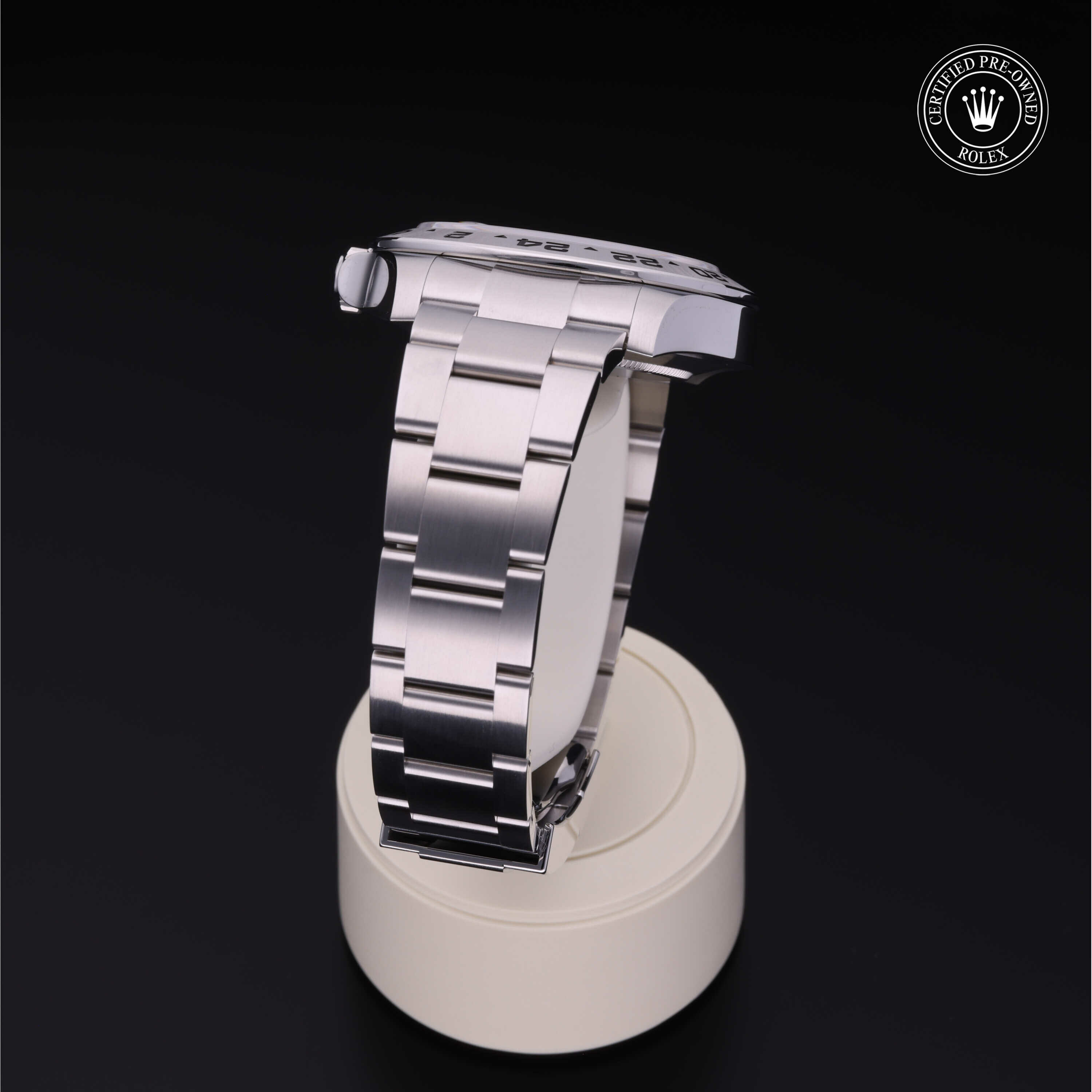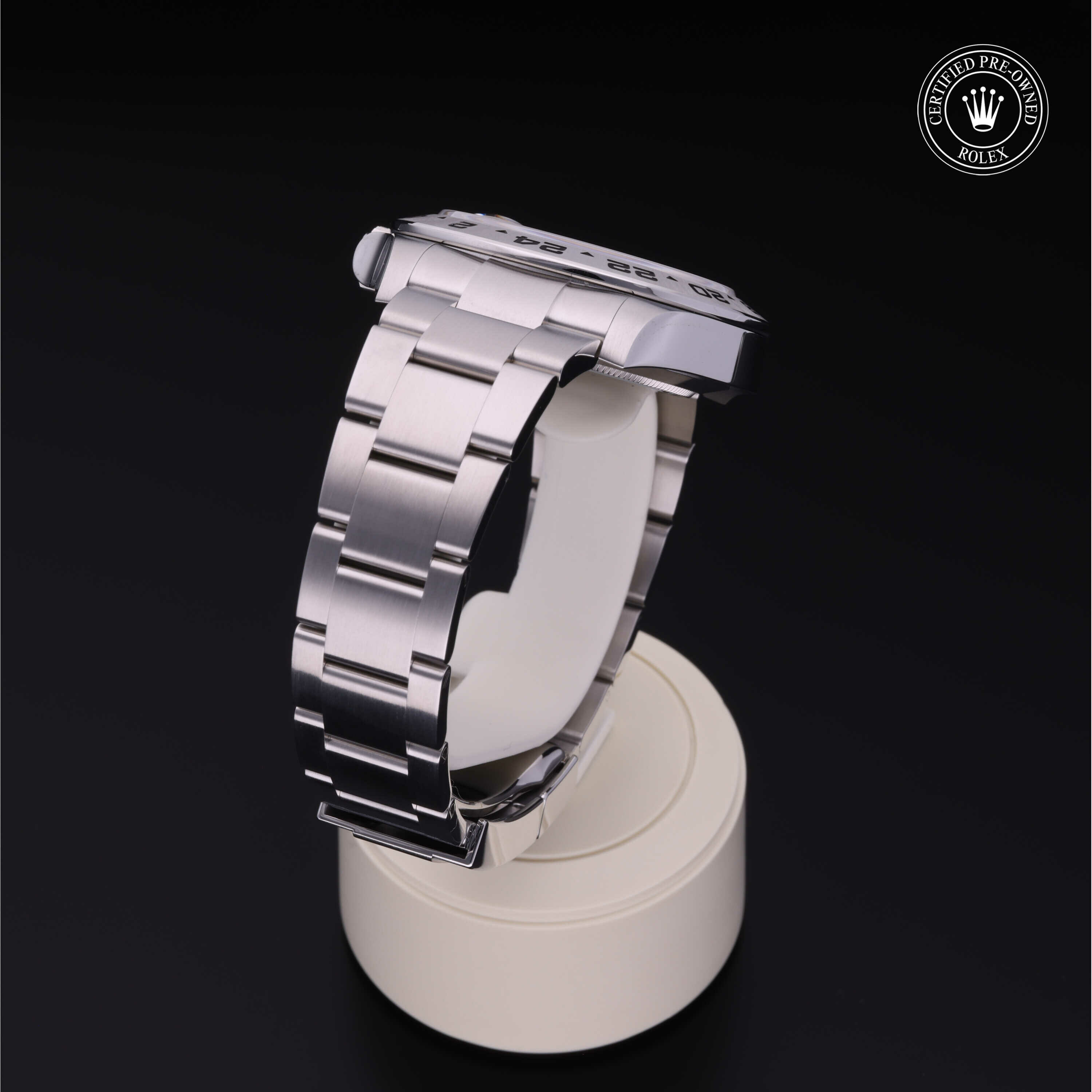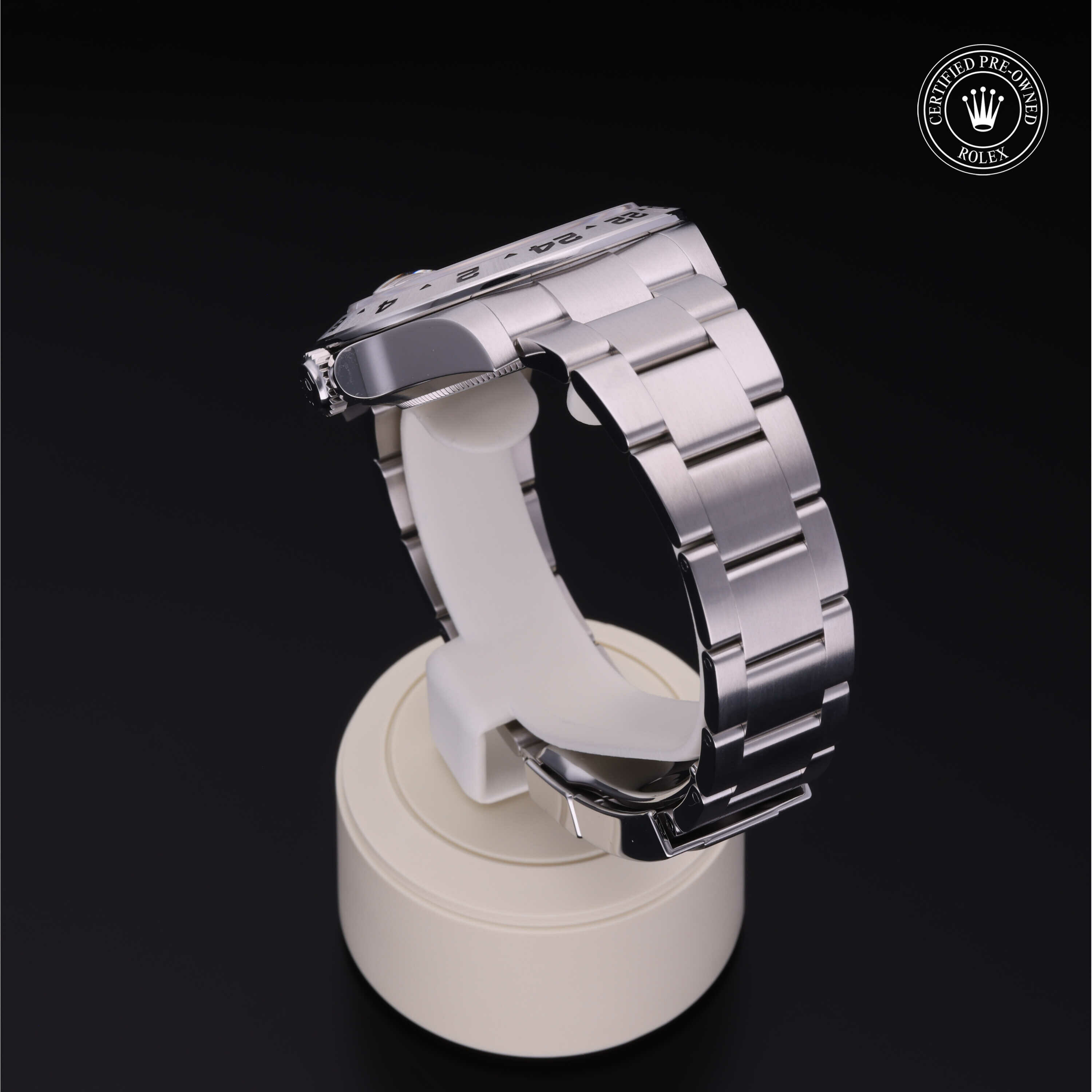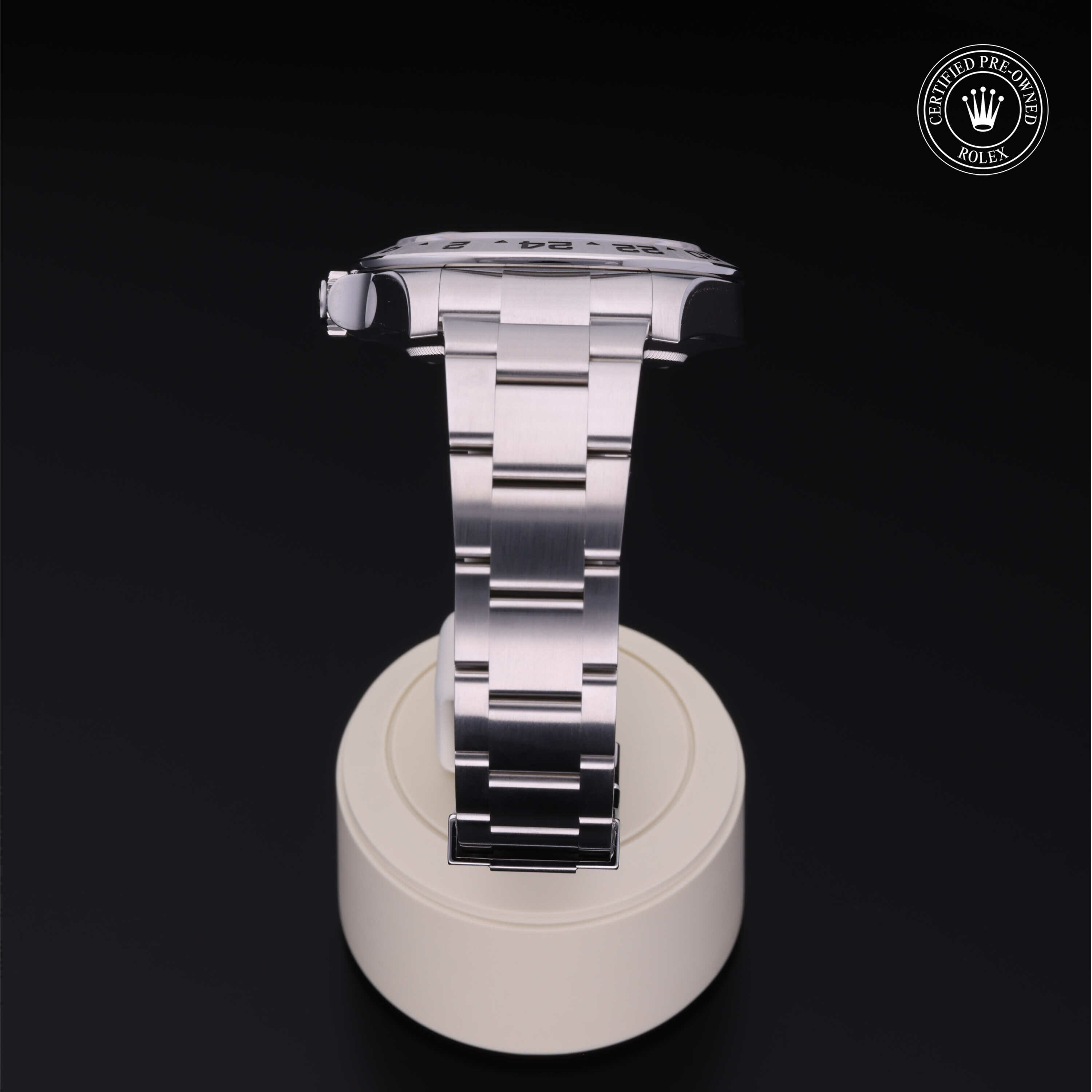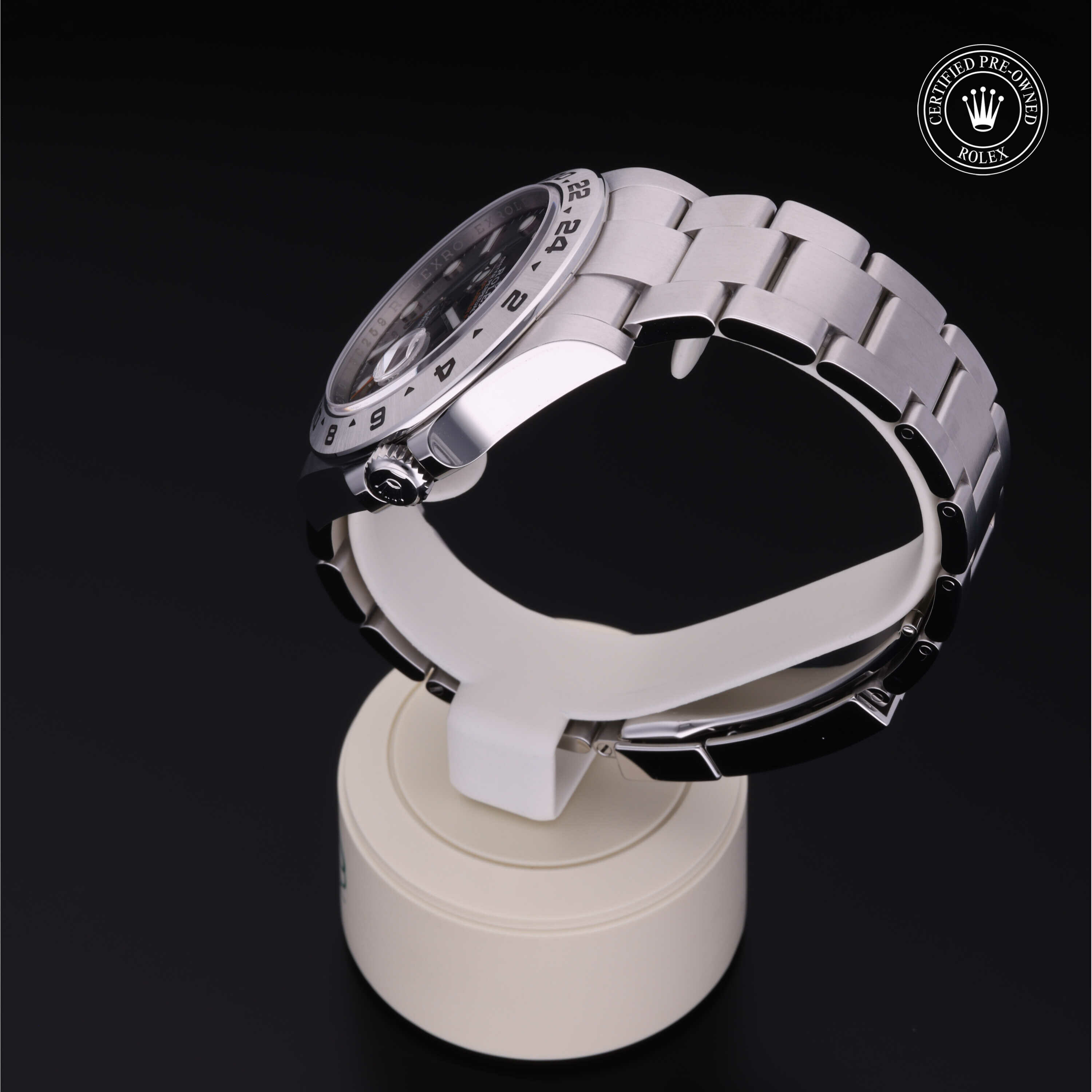 Introduite en 1971, lʼOyster Perpetual Explorer II a été conçue pour les conditions extrêmes et permet au porteur de distinguer les heures du jour de celles de la nuit grâce à son aiguille 24 heures supplémentaire qui indique la graduation 24 heures gravée sur la lunette.