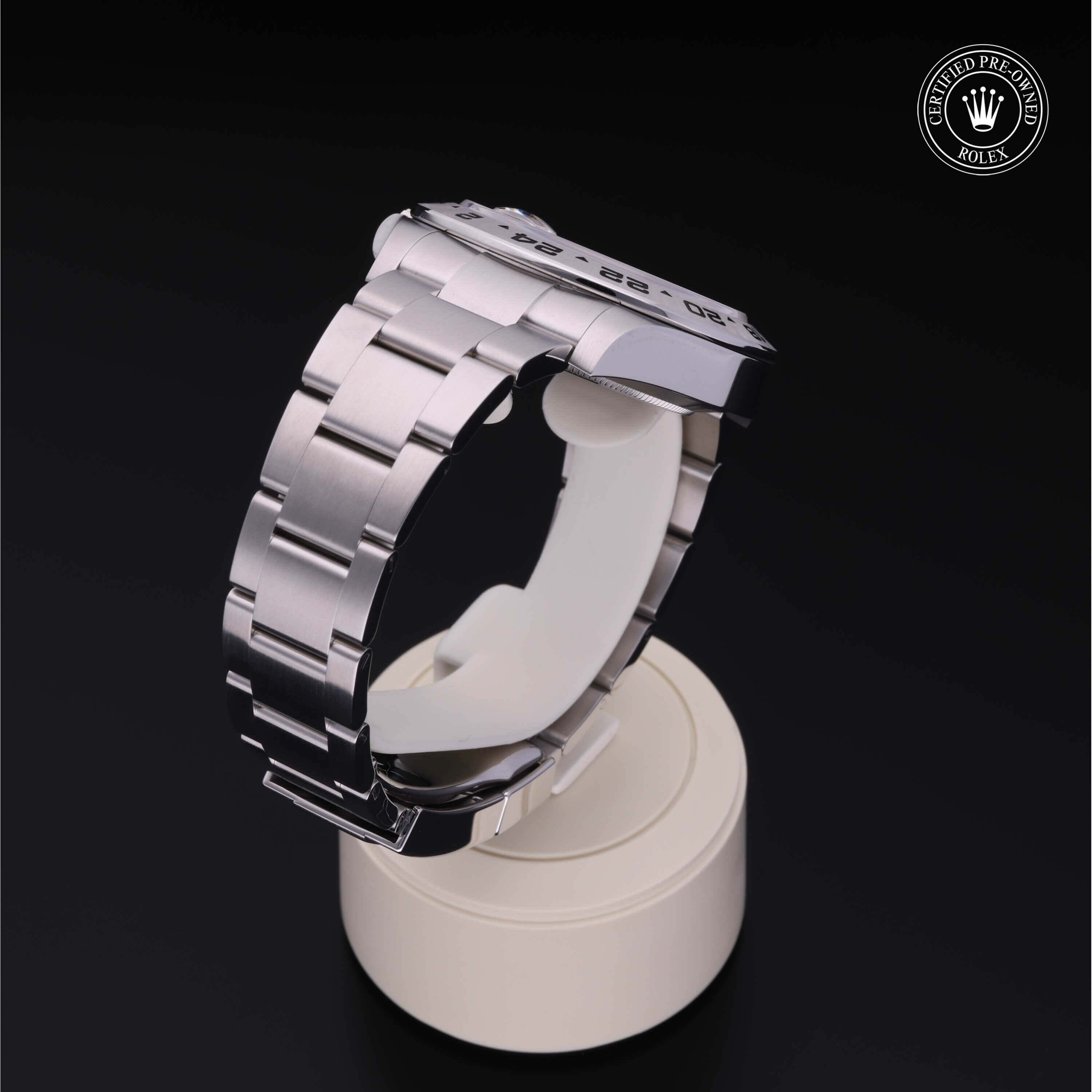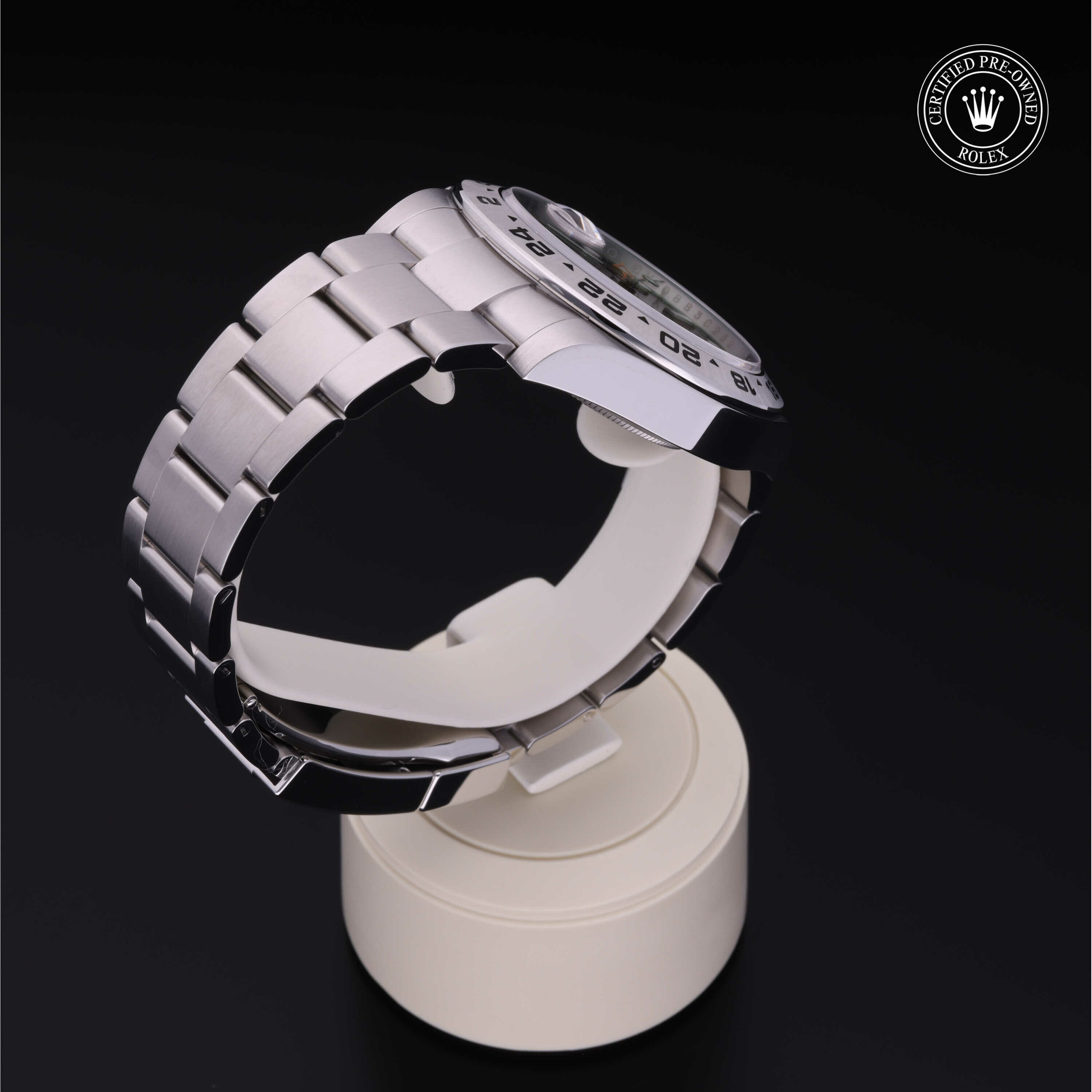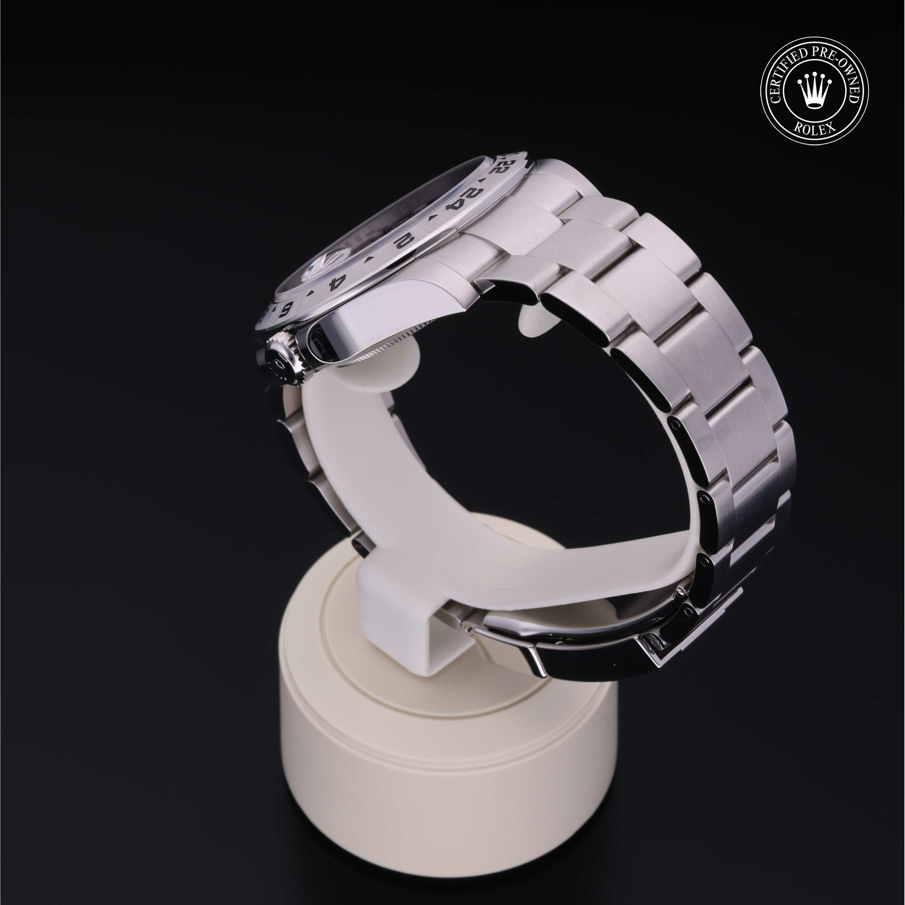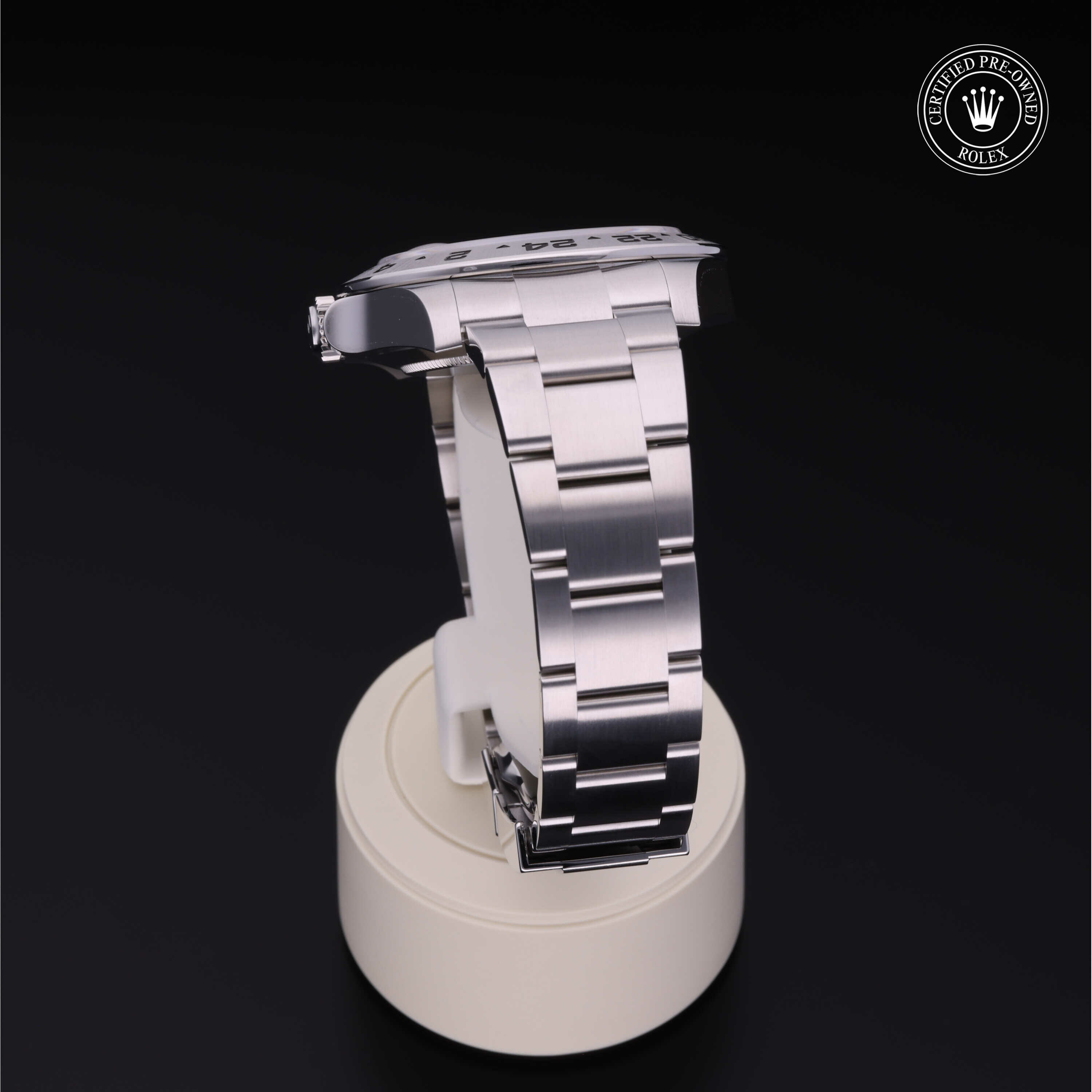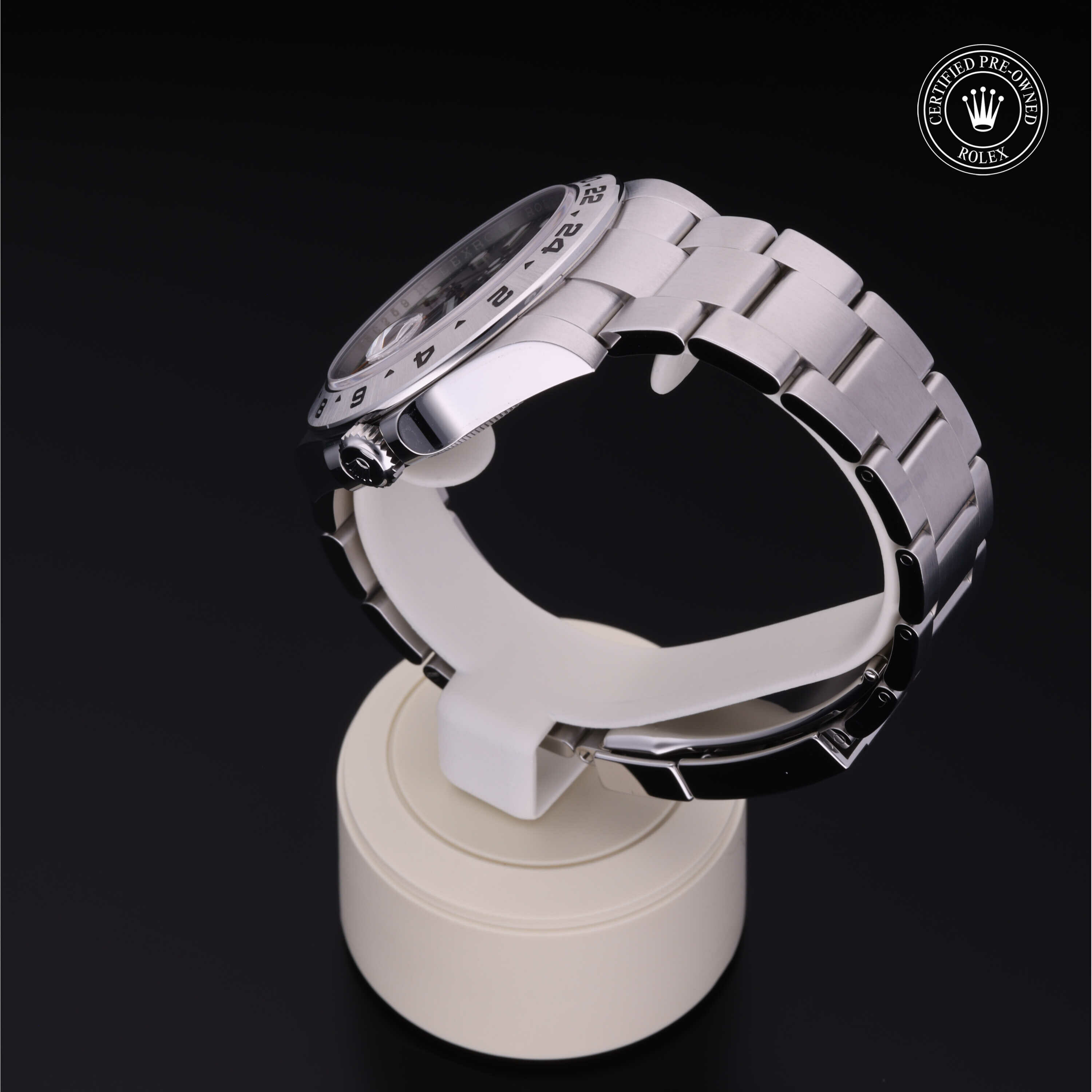 Introduite en 1971, lʼOyster Perpetual Explorer II a été conçue pour les conditions extrêmes et permet au porteur de distinguer les heures du jour de celles de la nuit grâce à son aiguille 24 heures supplémentaire qui indique la graduation 24 heures gravée sur la lunette.