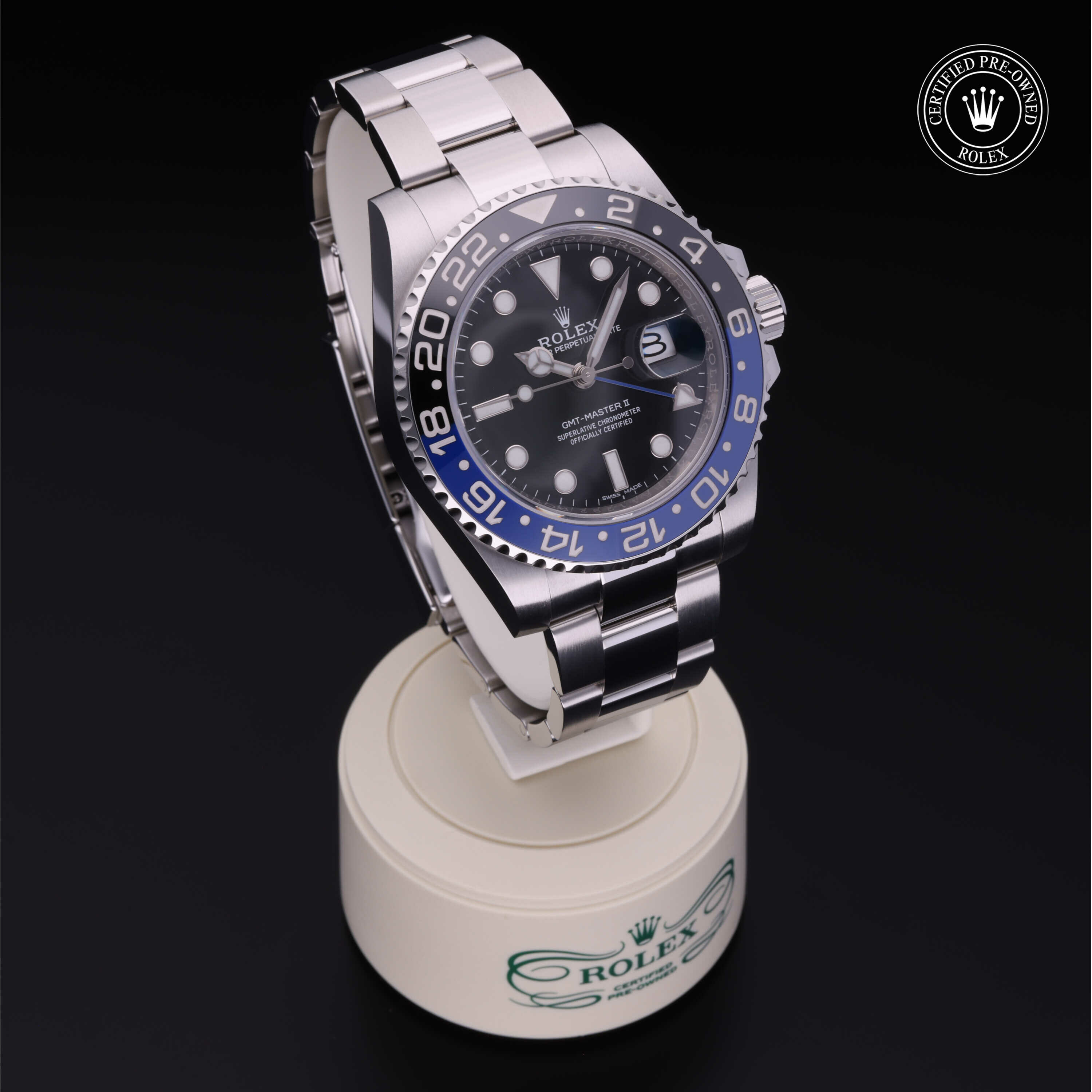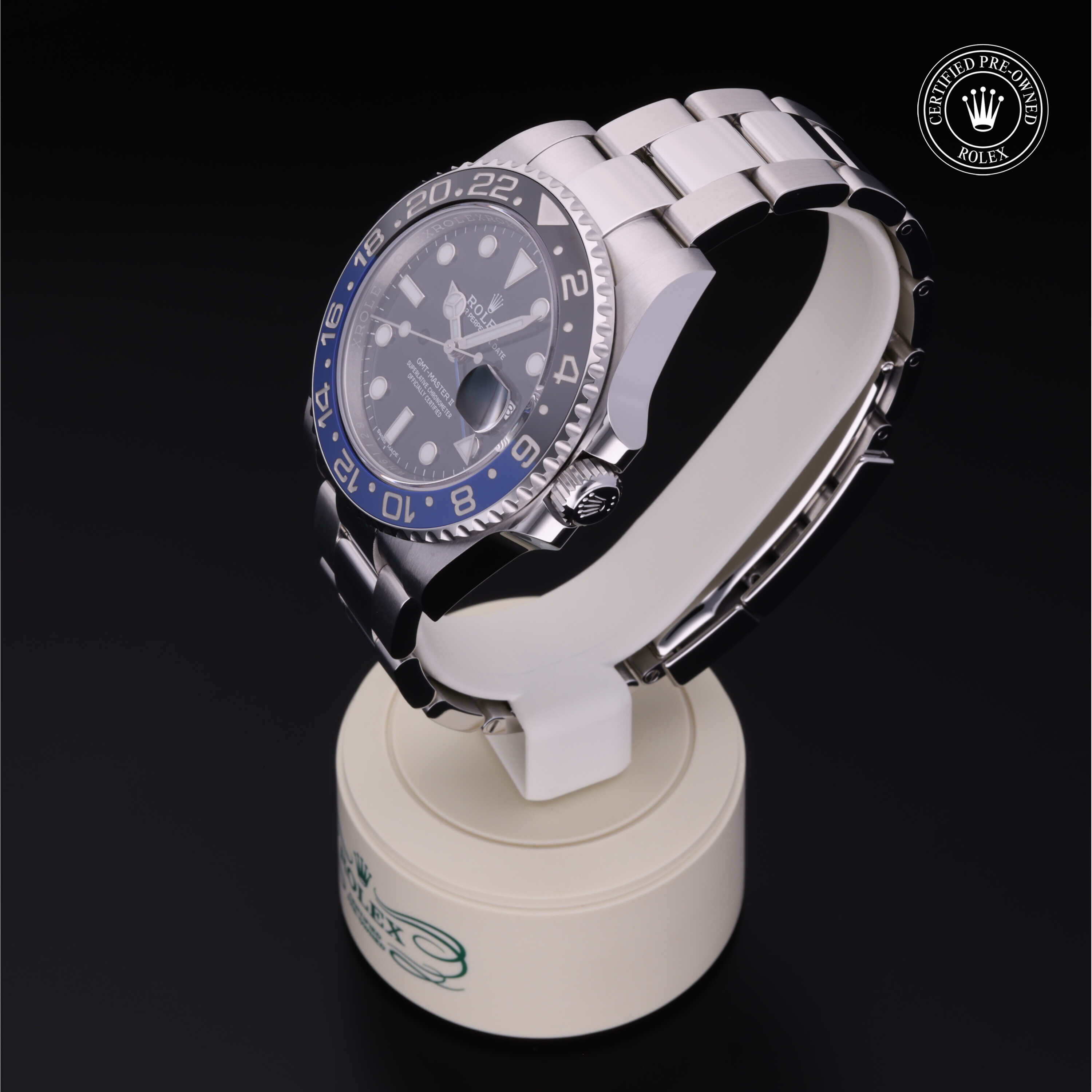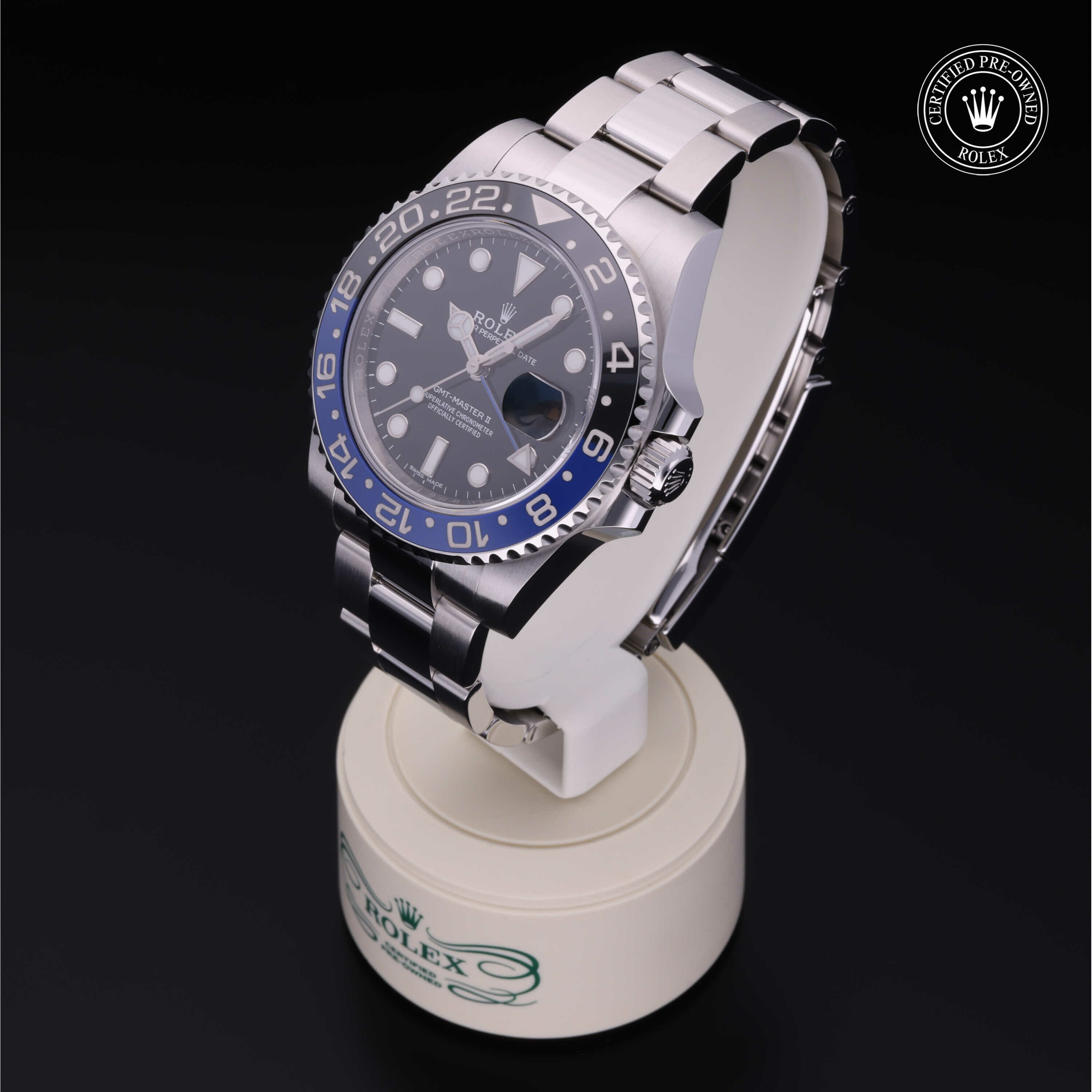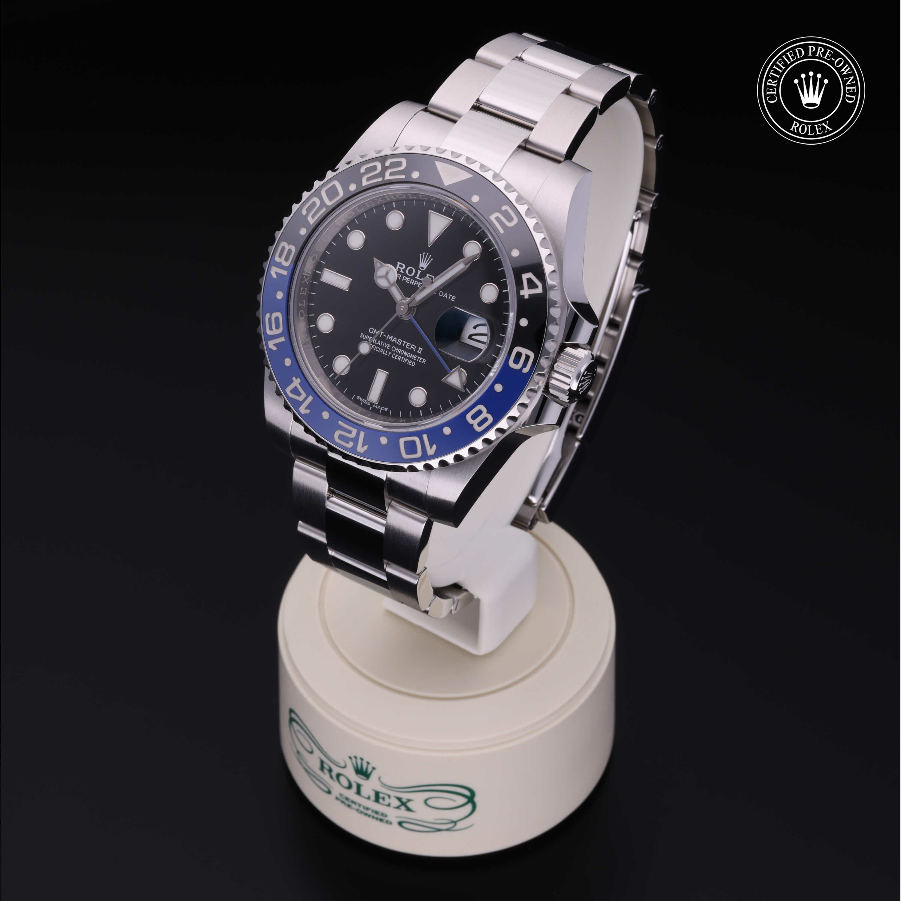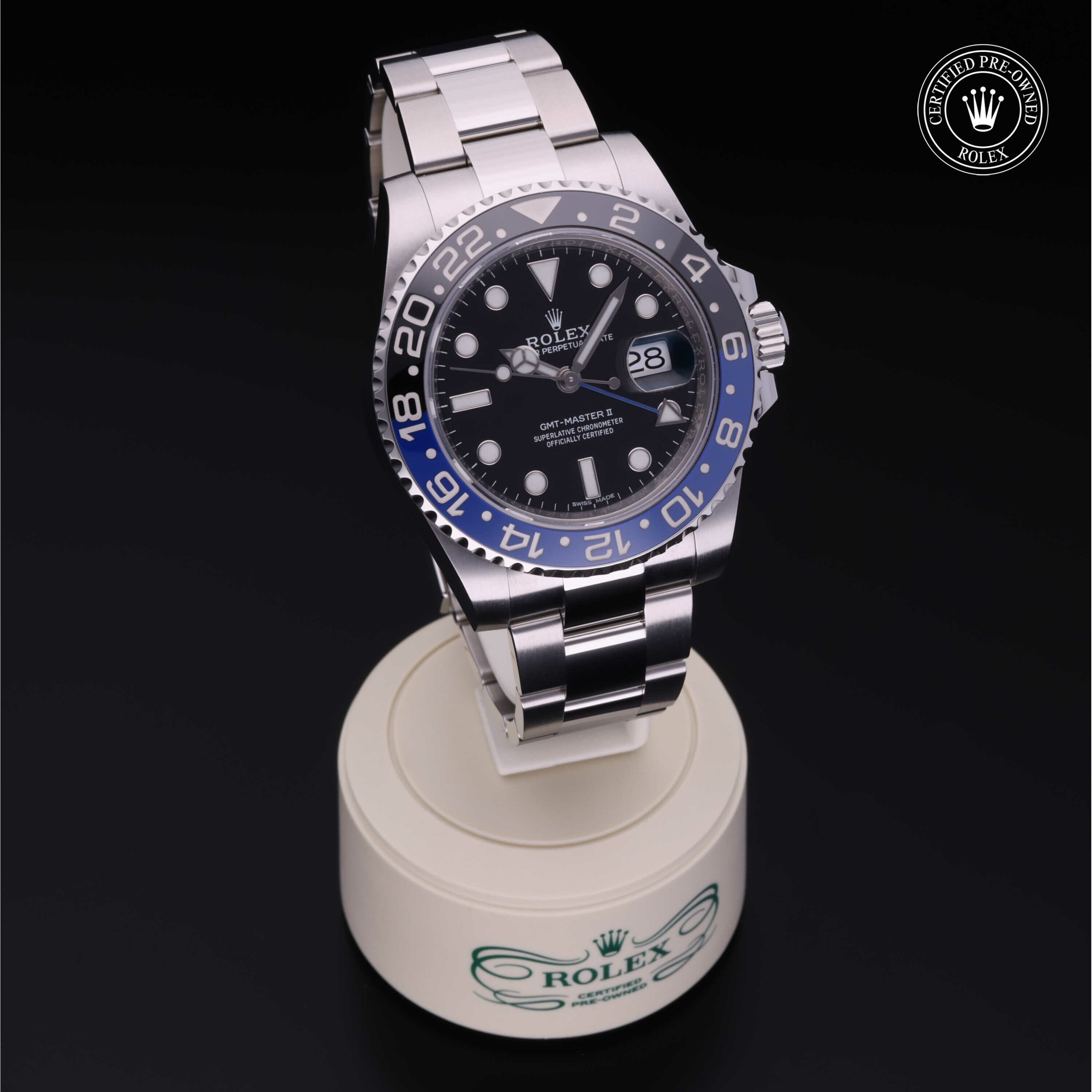 Présentée en 1982, lʼOyster Perpetual GMT‑Master II est dotée de l’emblématique disque de lunette bicolore – aujourd’hui façonné en céramique de haute technologie – et permet la lecture simultanée de l’heure de deux fuseaux horaires. Elle est l’héritière directe de la GMT‑Master d’origine lancée en 1955, qui a été rapidement adoptée par les pilotes transatlantiques comme un instrument d’aide à la navigation.
