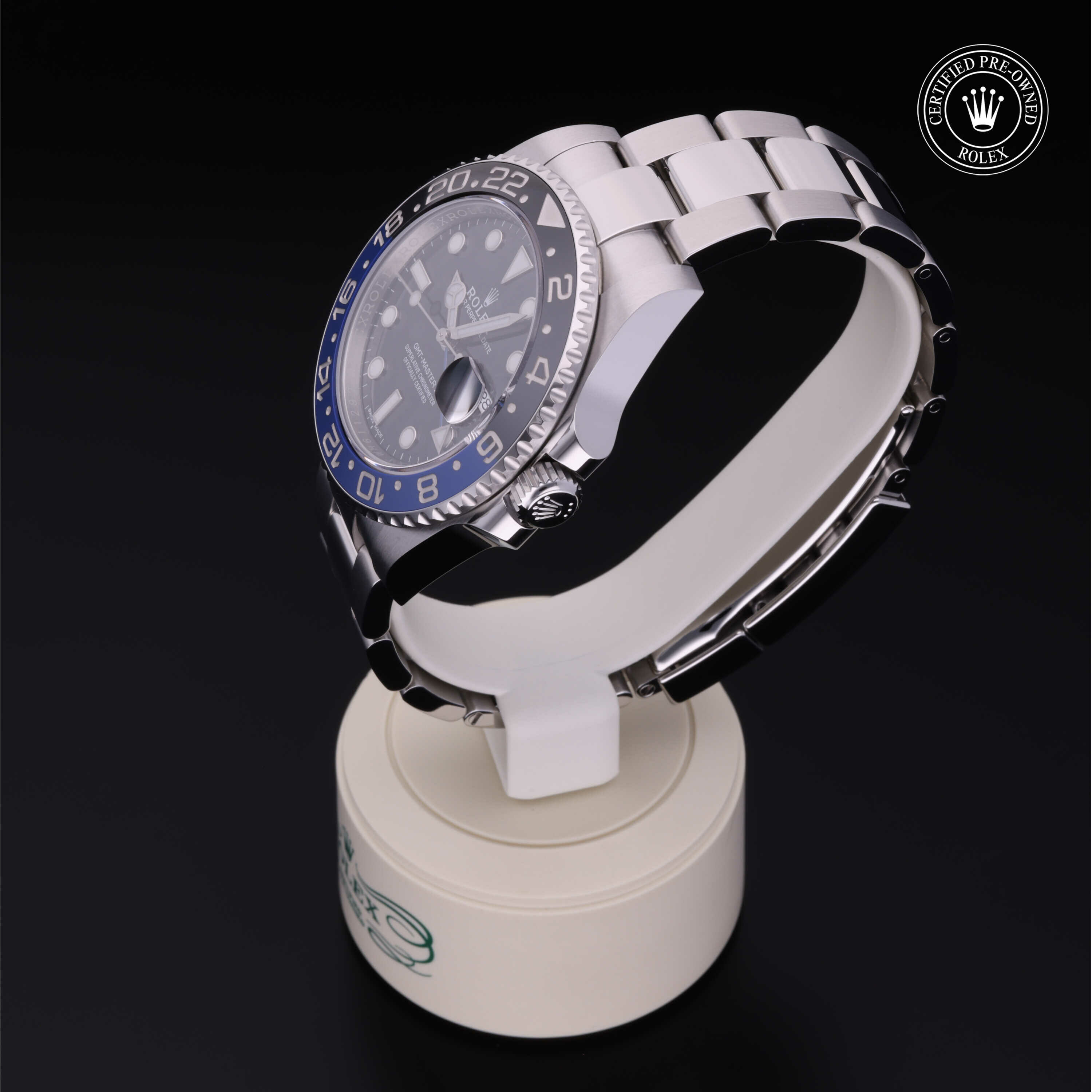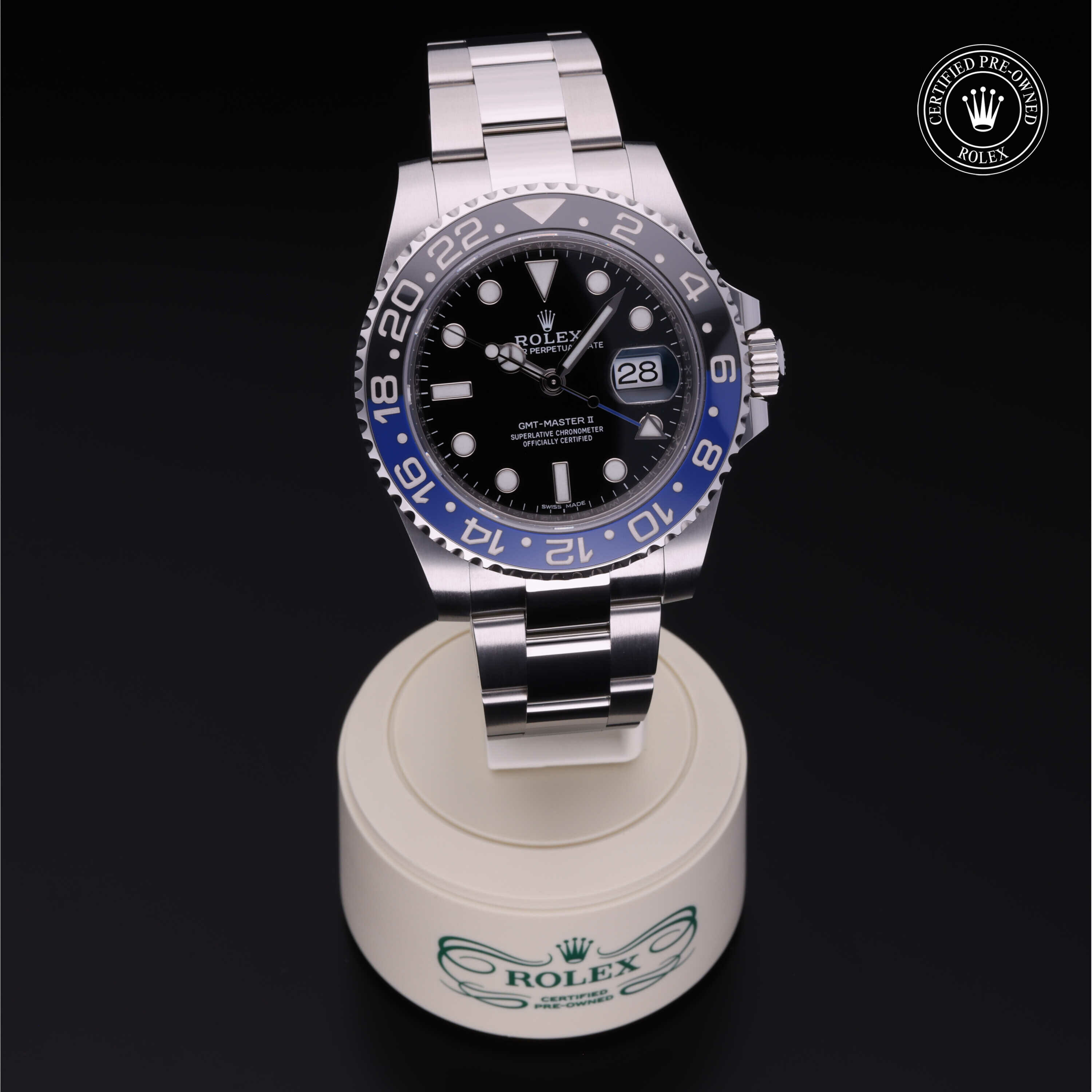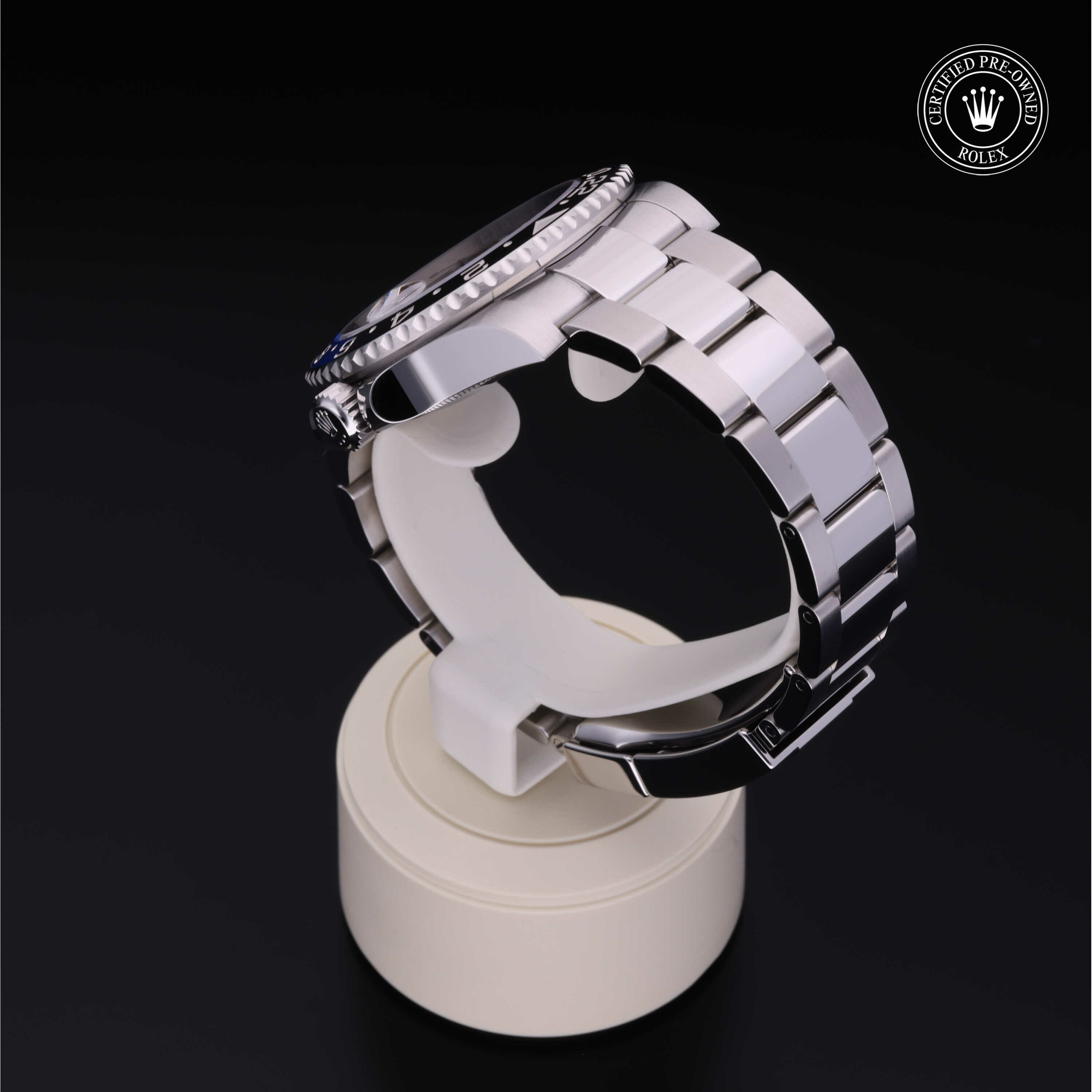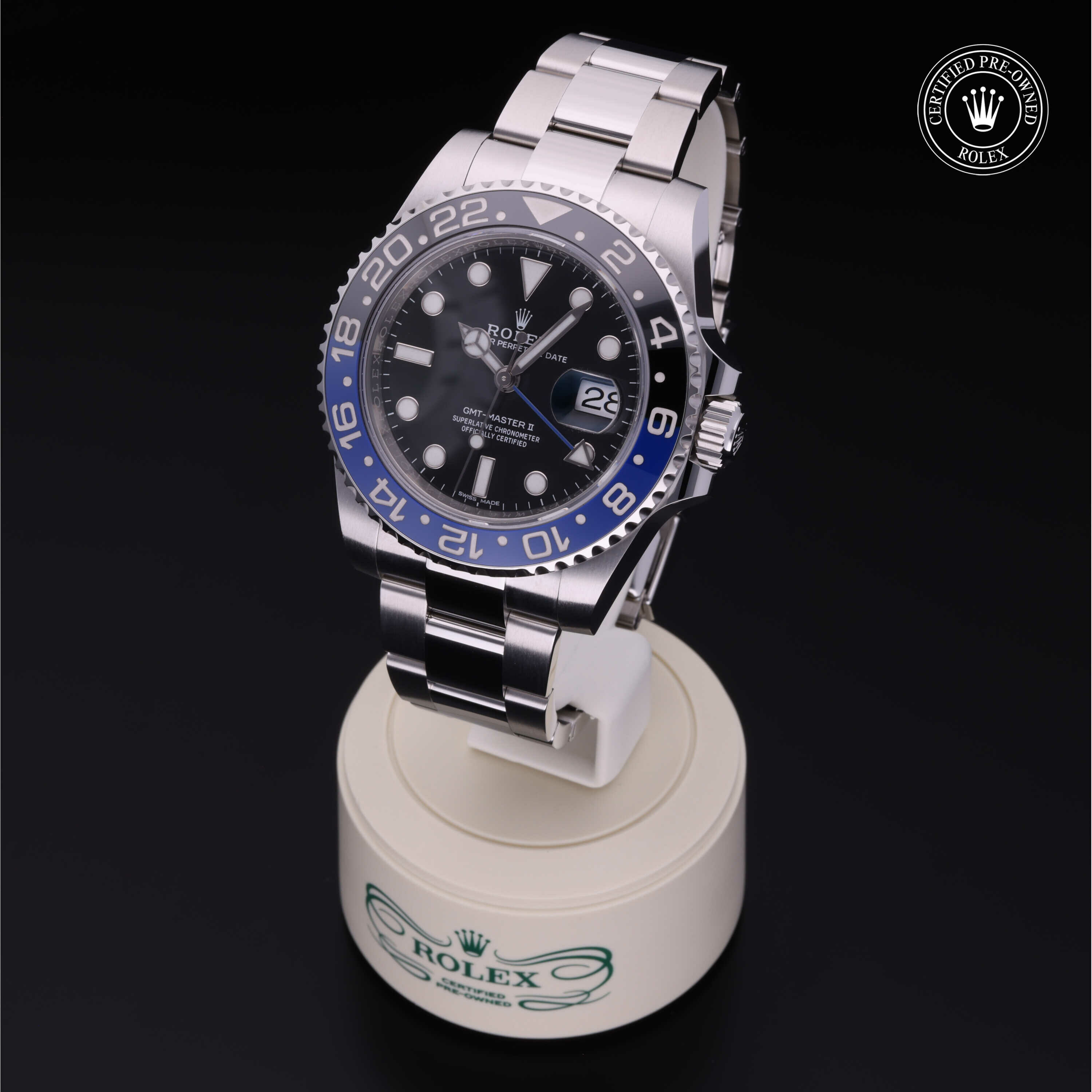 Présentée en 1982, lʼOyster Perpetual GMT‑Master II est dotée de l’emblématique disque de lunette bicolore – aujourd’hui façonné en céramique de haute technologie – et permet la lecture simultanée de l’heure de deux fuseaux horaires. Elle est l’héritière directe de la GMT‑Master d’origine lancée en 1955, qui a été rapidement adoptée par les pilotes transatlantiques comme un instrument d’aide à la navigation.