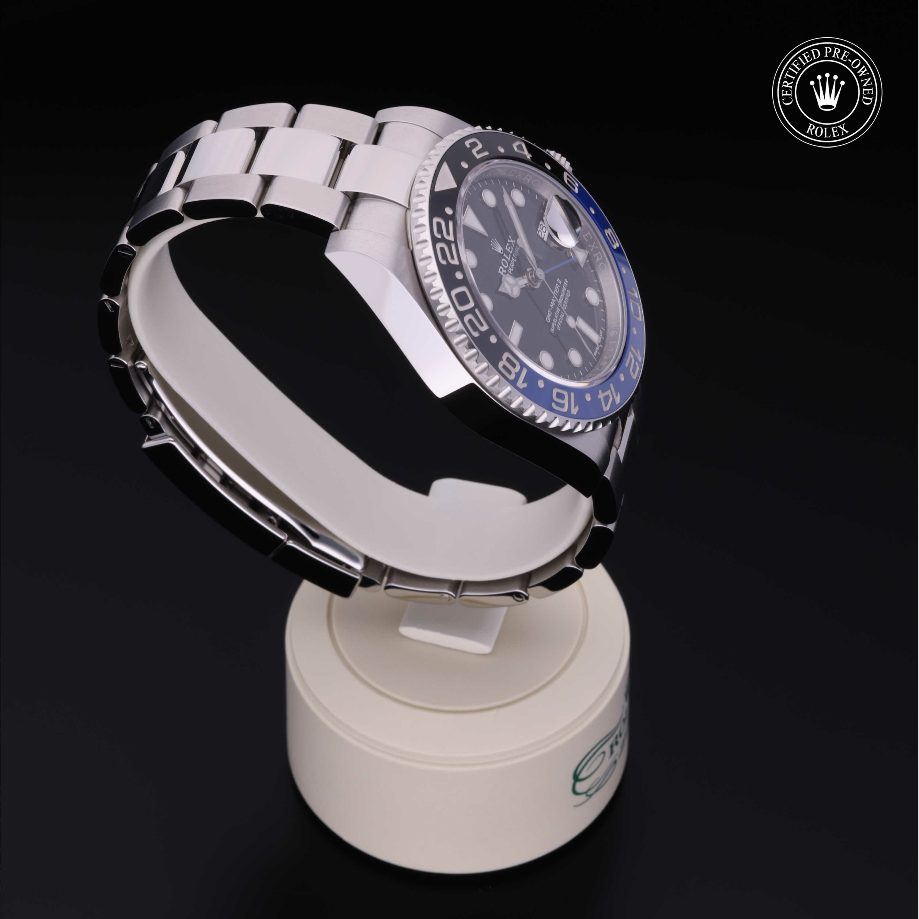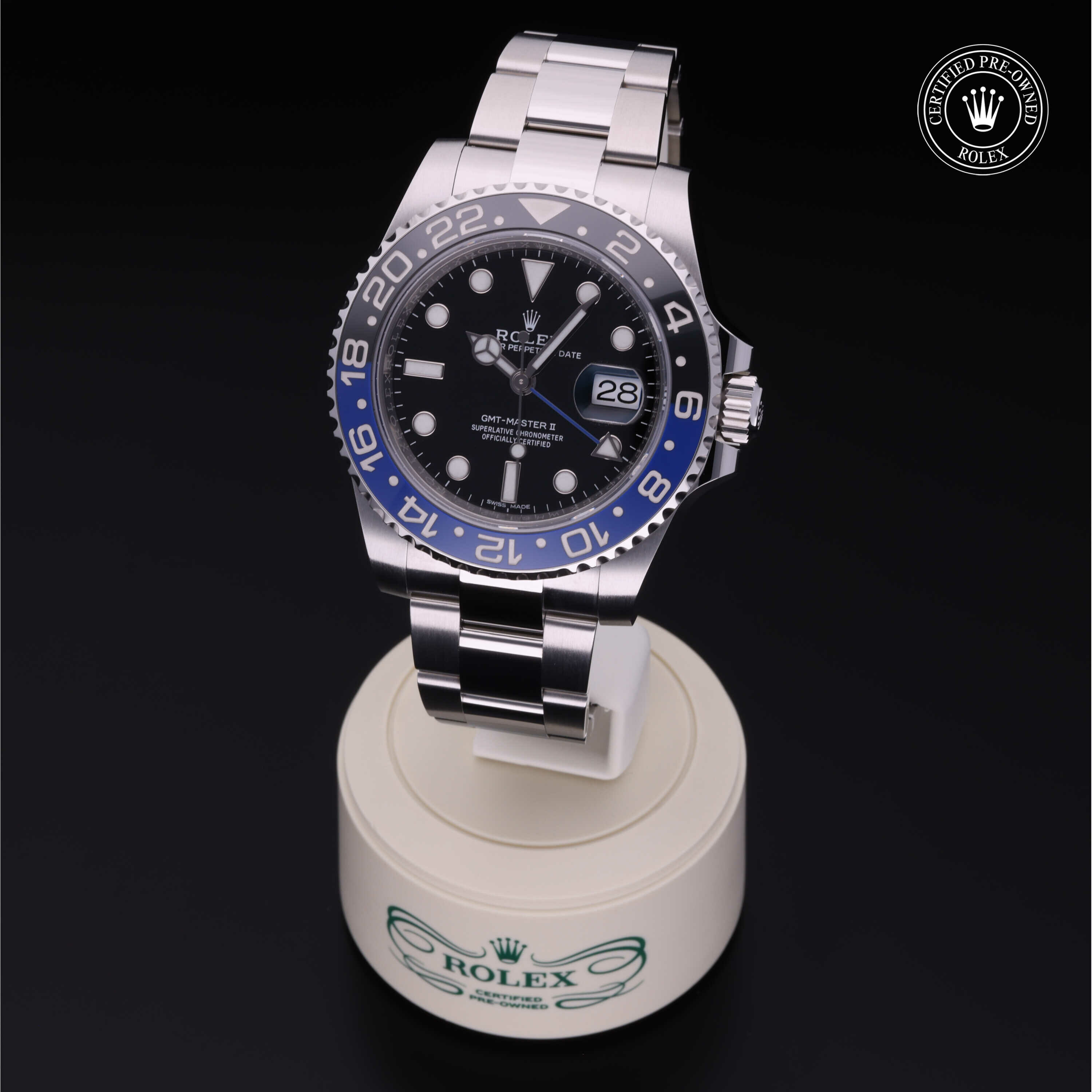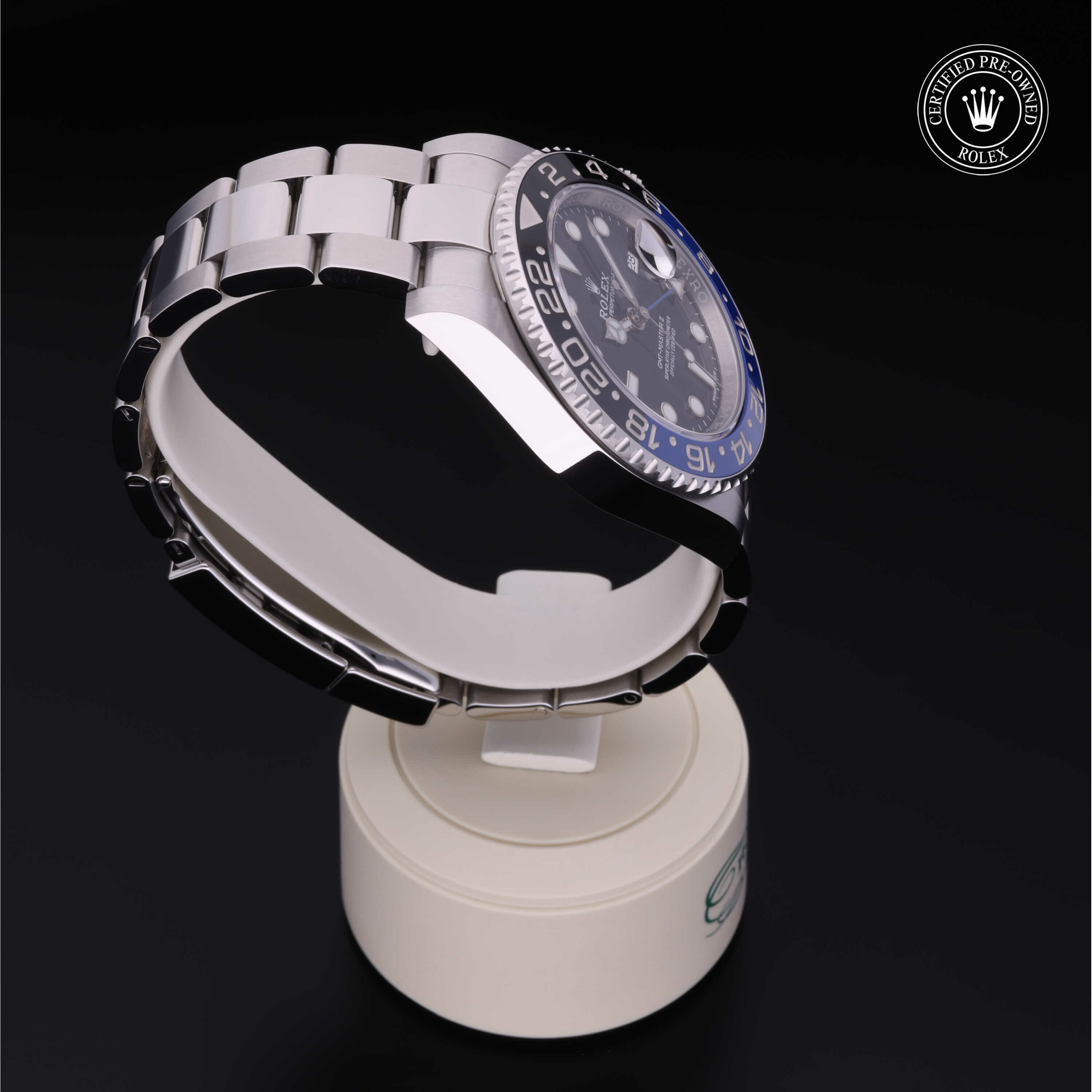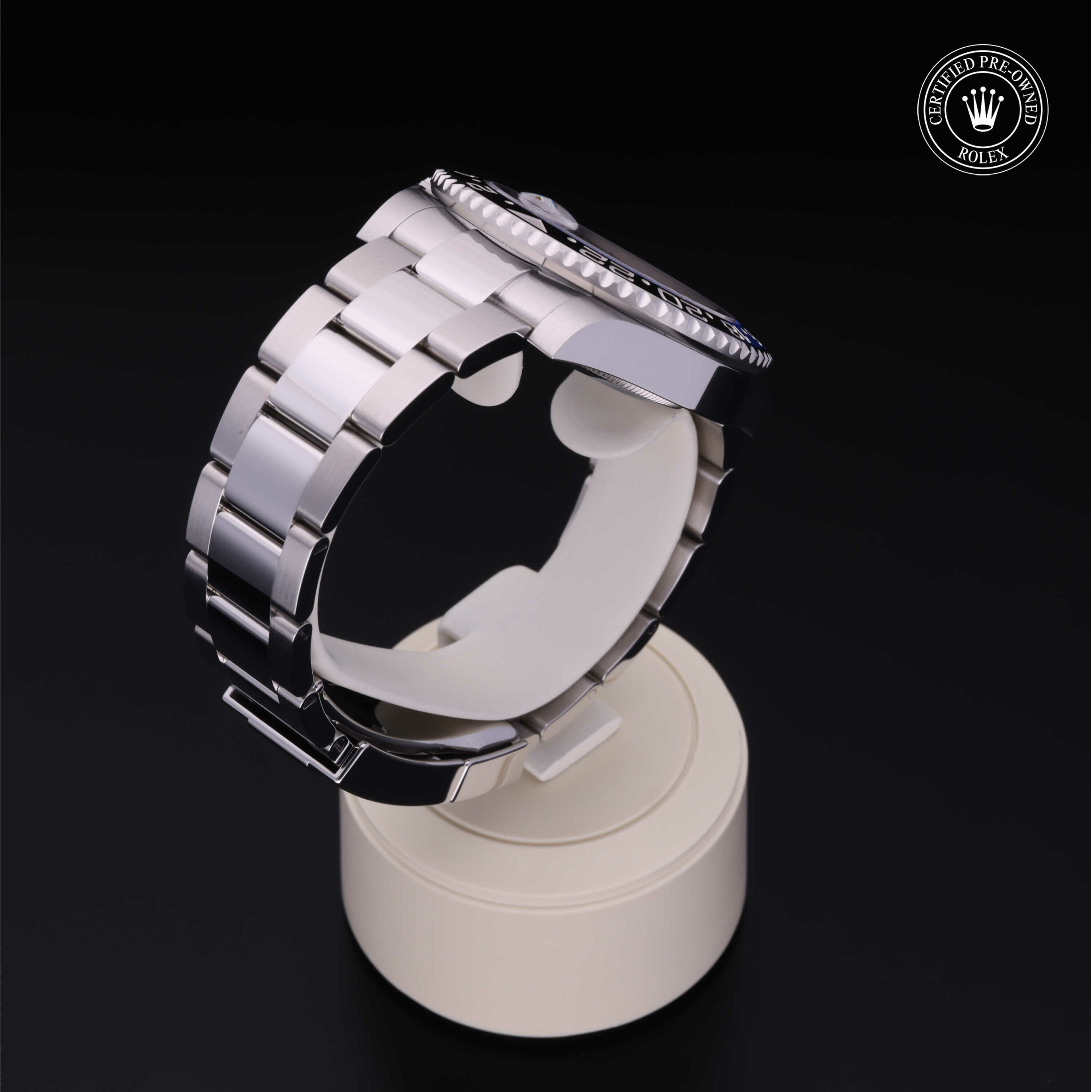 Présentée en 1982, lʼOyster Perpetual GMT‑Master II est dotée de l’emblématique disque de lunette bicolore – aujourd’hui façonné en céramique de haute technologie – et permet la lecture simultanée de l’heure de deux fuseaux horaires. Elle est l’héritière directe de la GMT‑Master d’origine lancée en 1955, qui a été rapidement adoptée par les pilotes transatlantiques comme un instrument d’aide à la navigation.