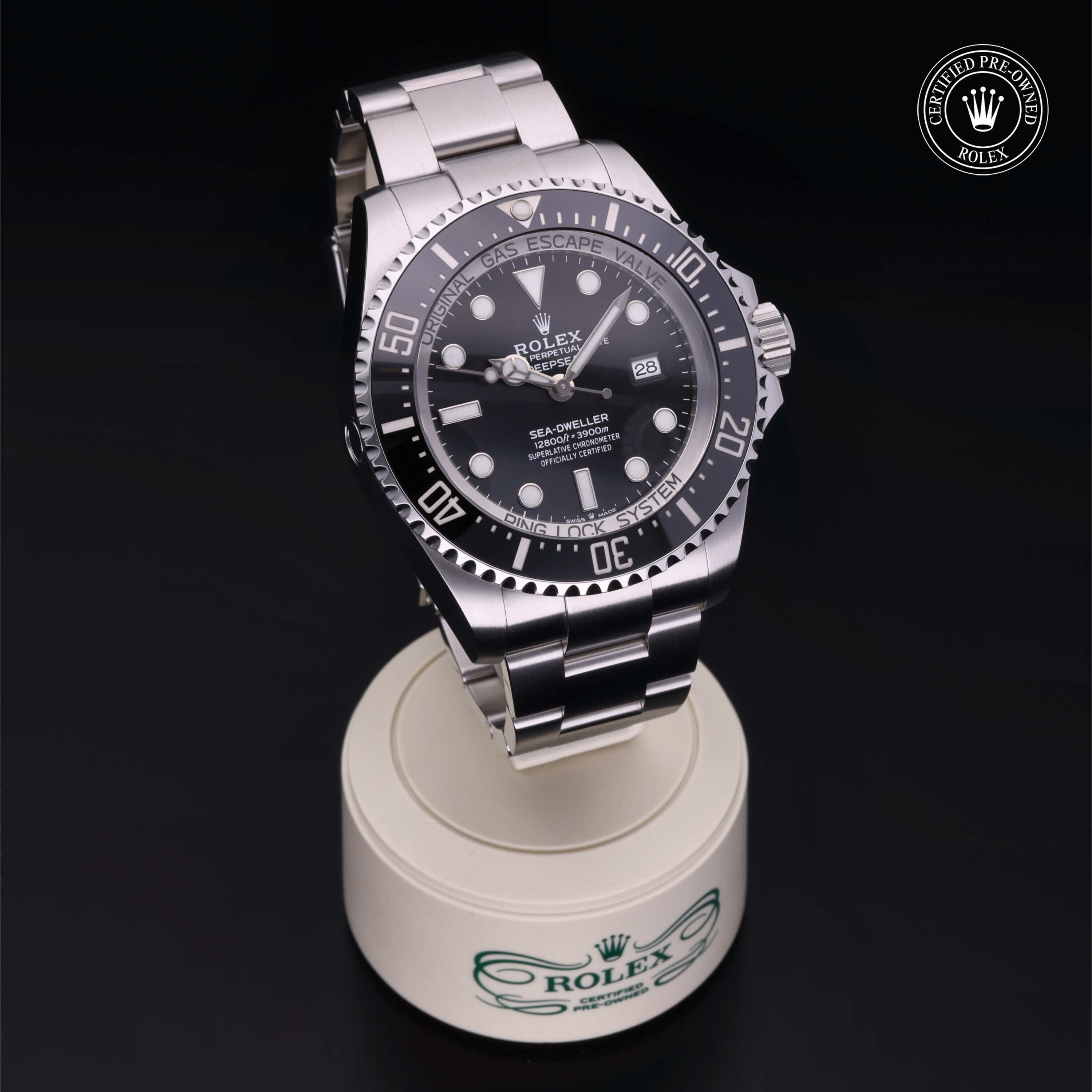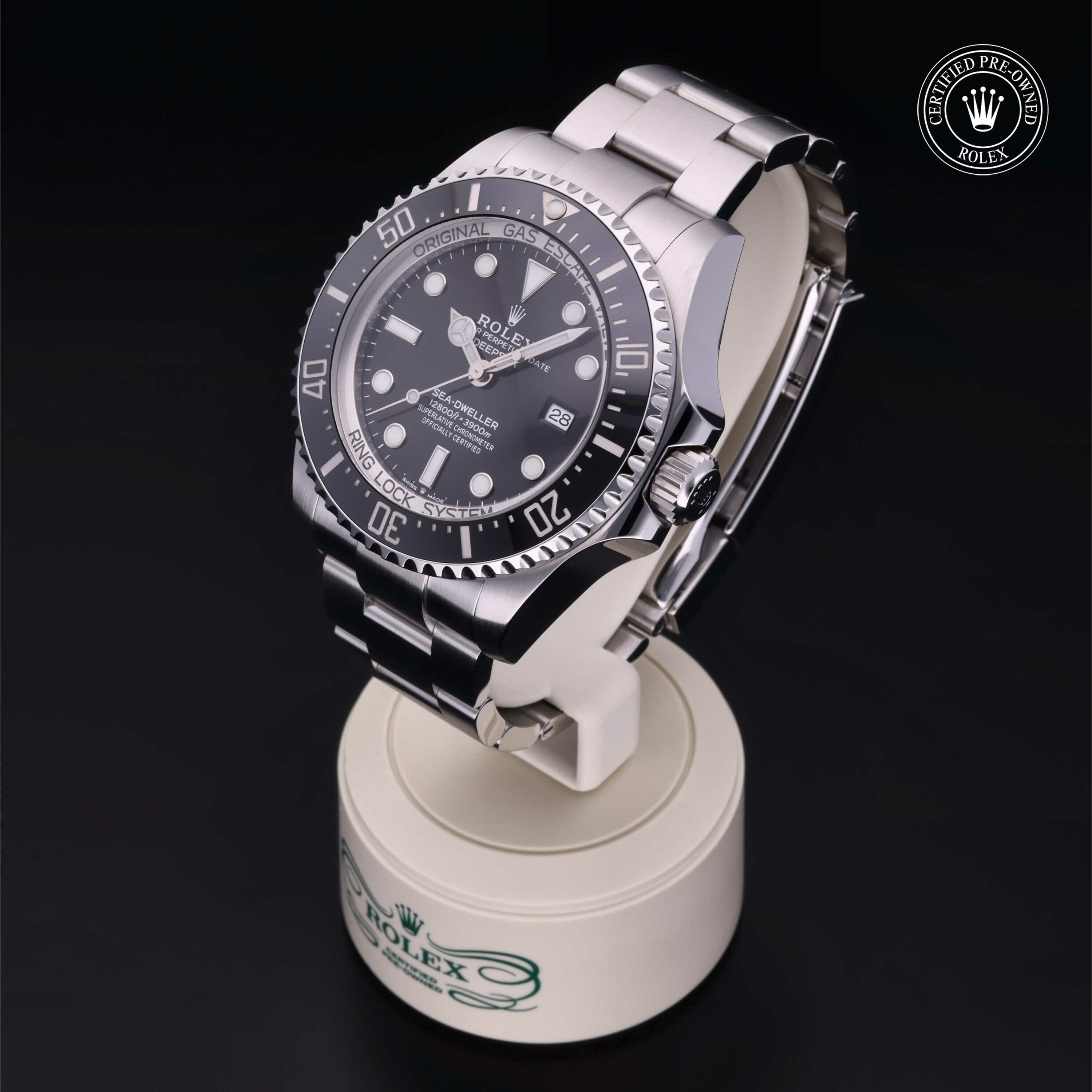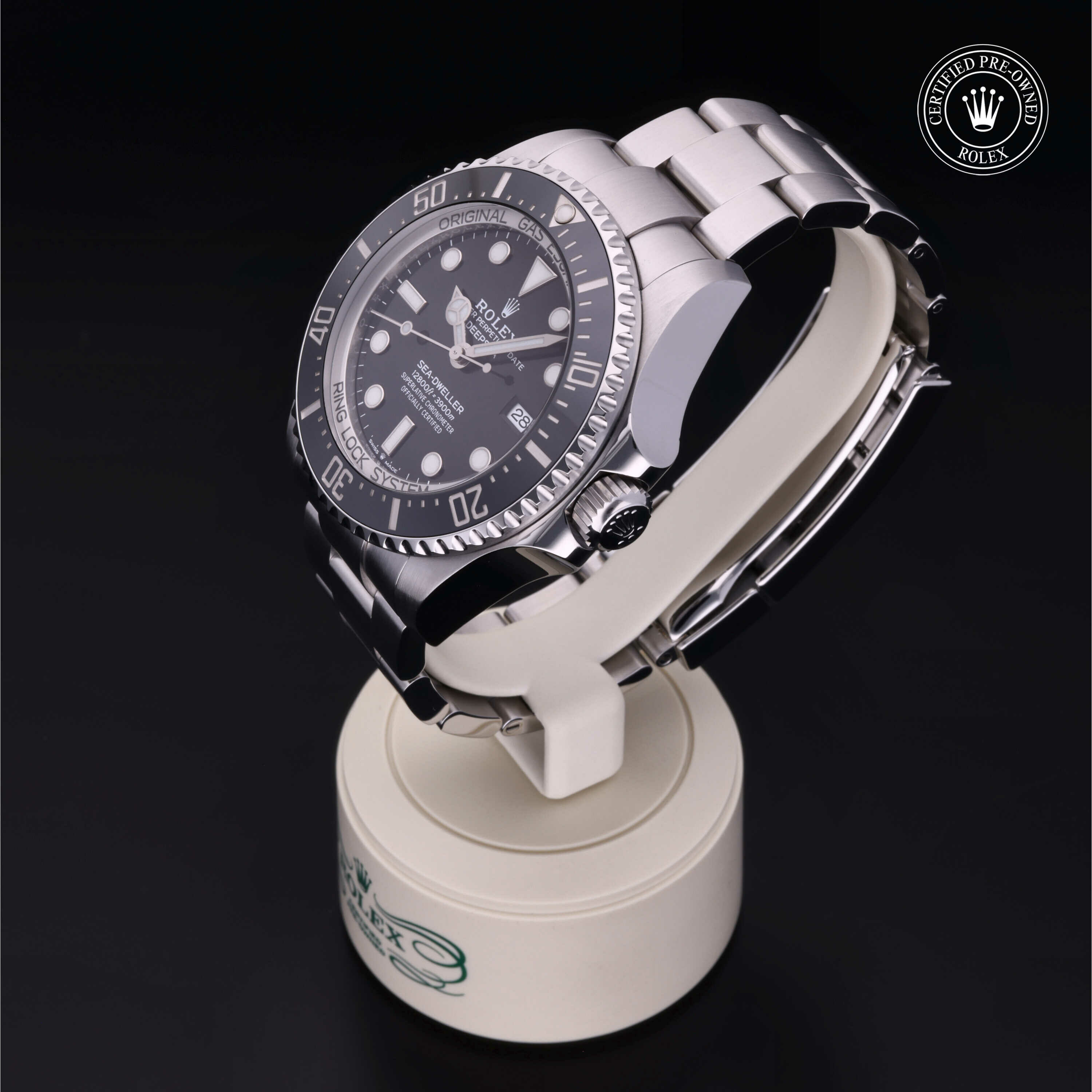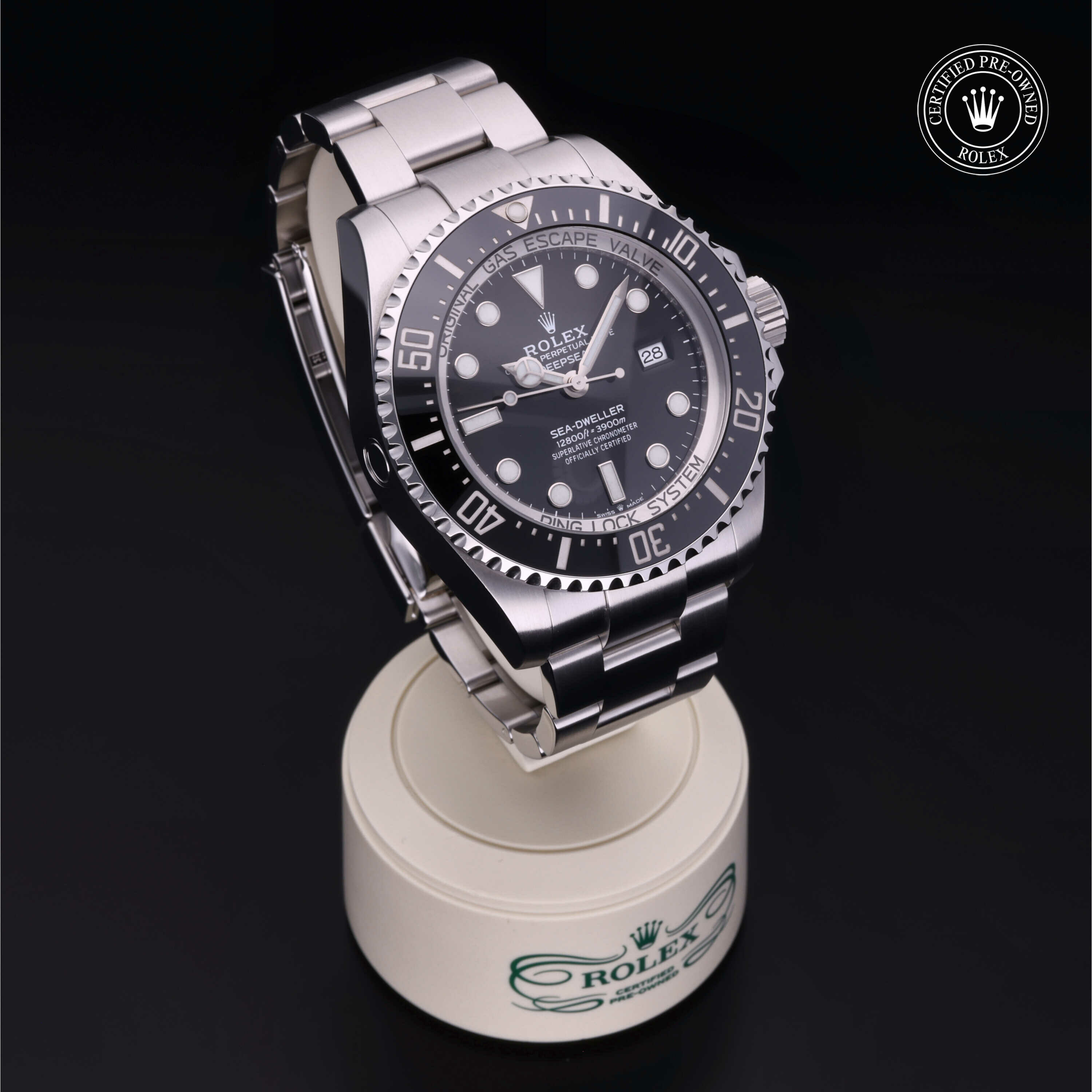 De Oyster Perpetual Rolex Deepsea wordt sinds zijn lancering in 2008 geleverd met een geïntegreerd Ringlock-systeem, een unieke kastarchitectuur waarmee het horloge de druk tot een diepte van 3.900 meter kan weerstaan.