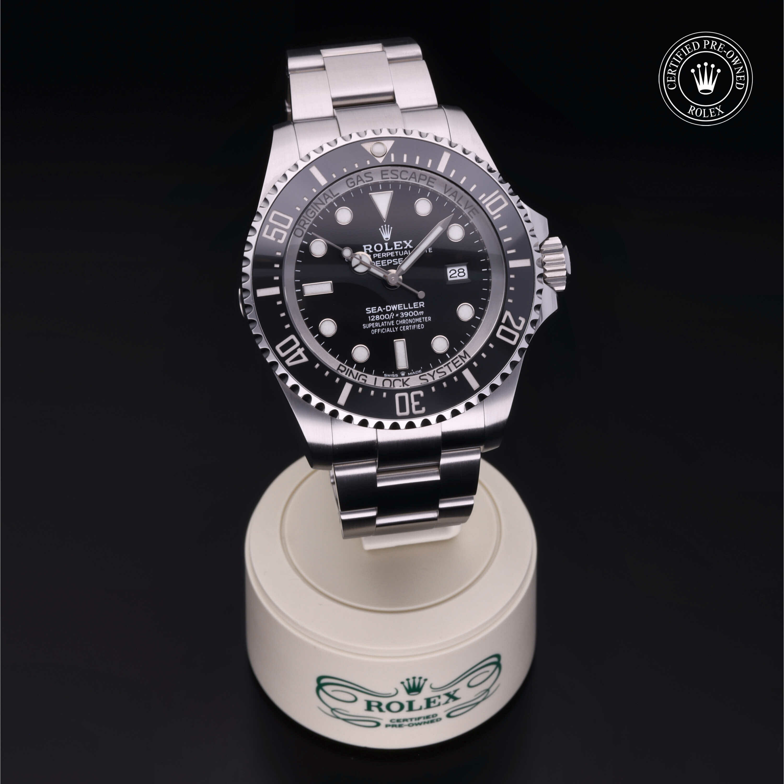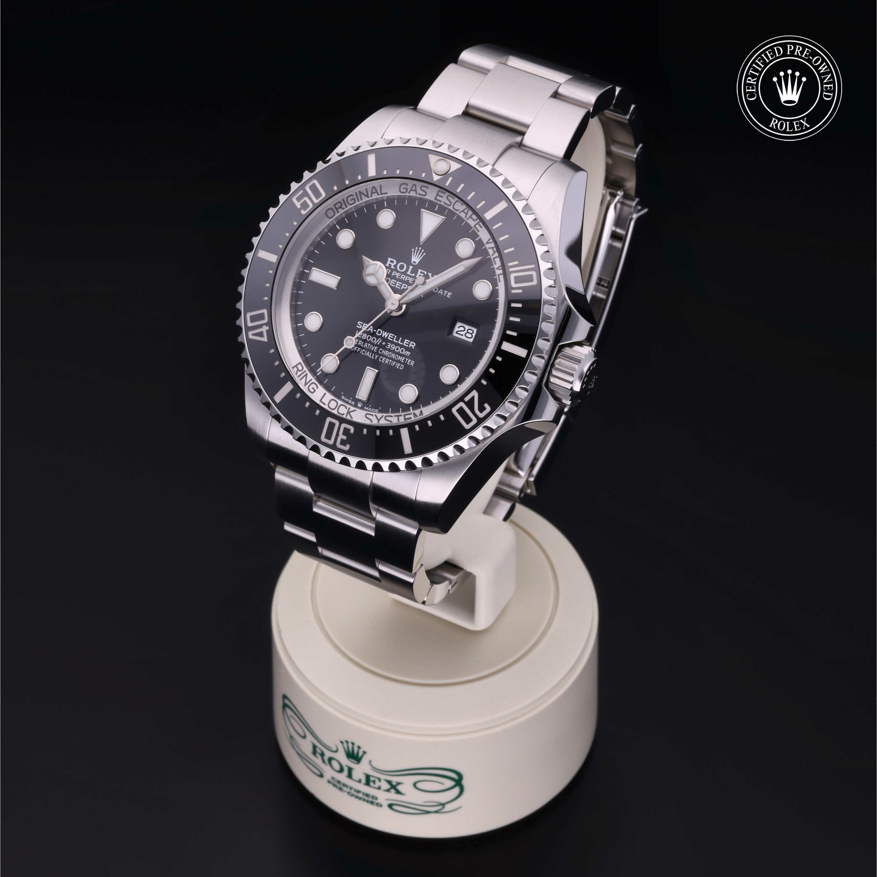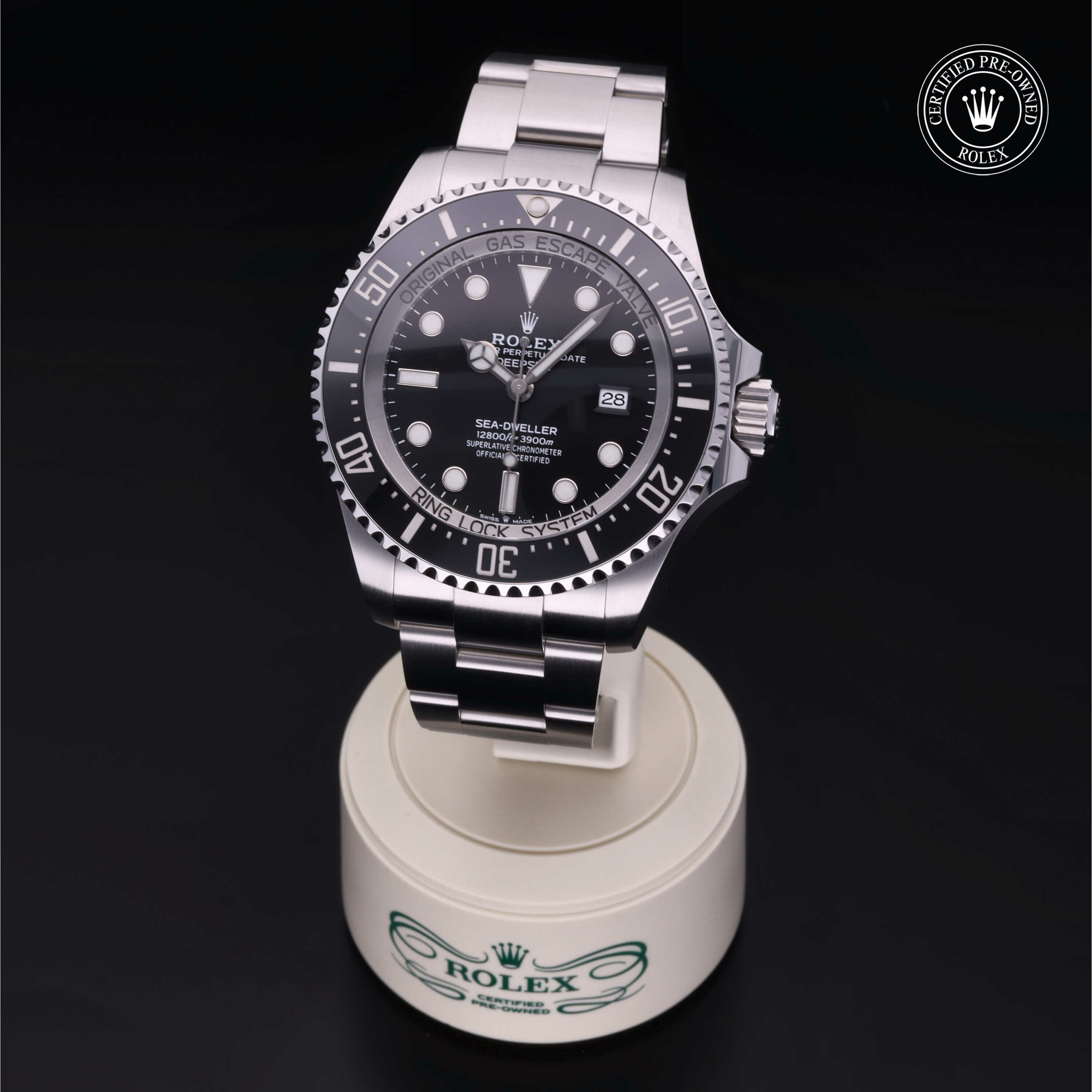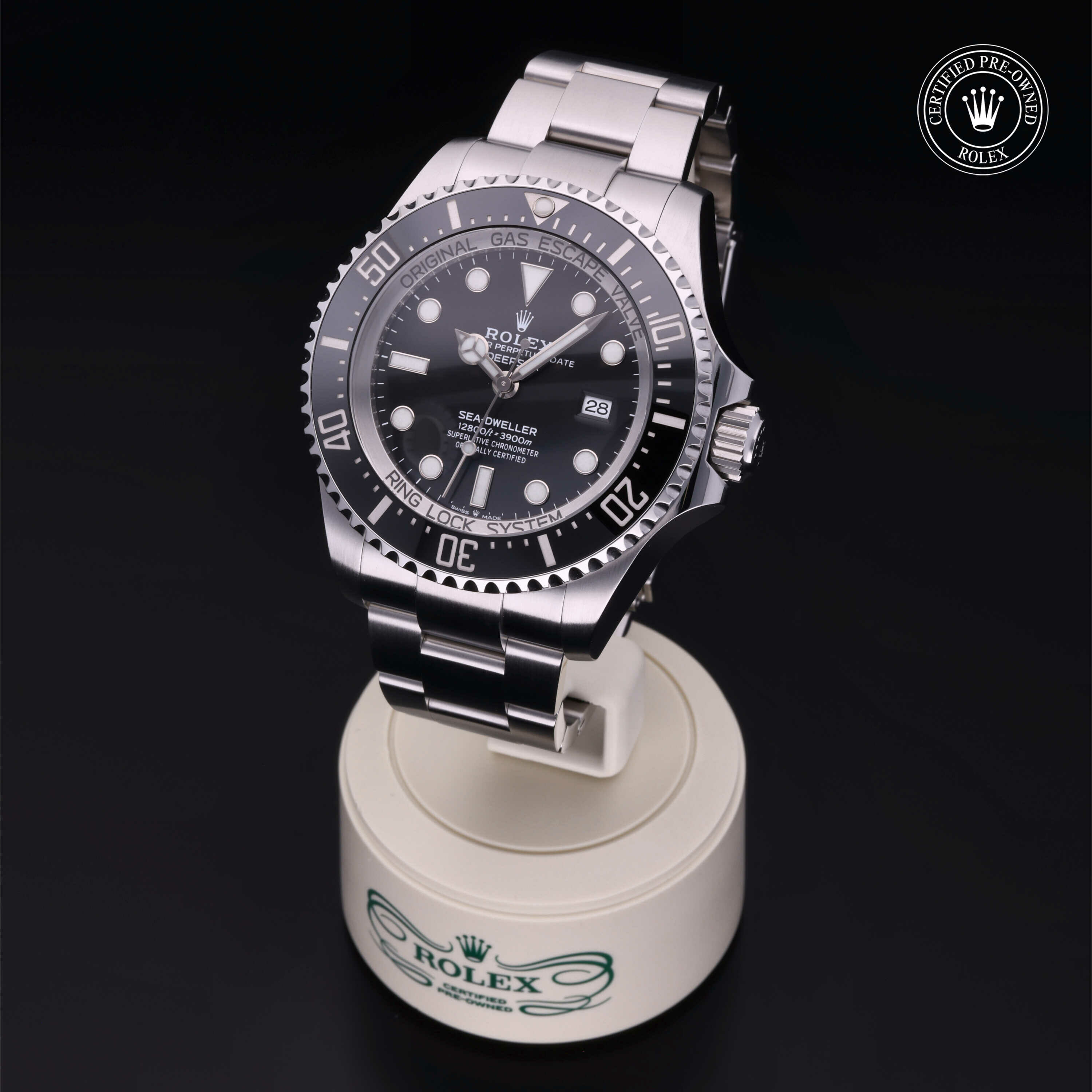 De Oyster Perpetual Rolex Deepsea wordt sinds zijn lancering in 2008 geleverd met een geïntegreerd Ringlock-systeem, een unieke kastarchitectuur waarmee het horloge de druk tot een diepte van 3.900 meter kan weerstaan.